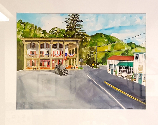 AL: I mostly paint outdoors. I mostly do plein air painting. I take my portable easel and wear a hat for the sun!! I love being outside. There are some occasions when I can't do that, when I have to take a photograph and paint indoors. Some of the work that's at the Carversville Grocery is from photographs but most of it is from outside.