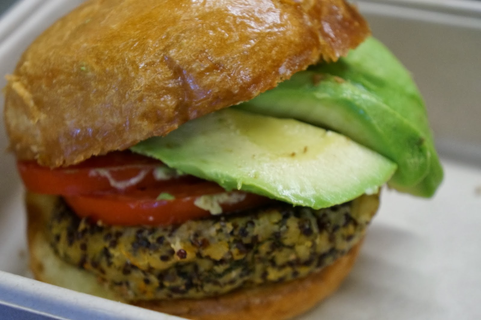 Sweet potato quinoa burger-v- with a blackberry salsa